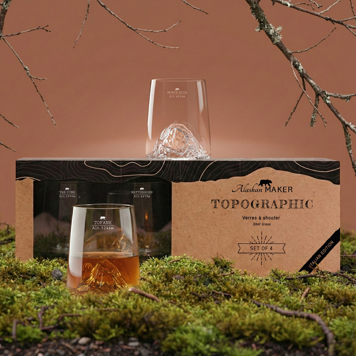 Make your evenings memorable with our TOPOGRAPHIC shot glasses. 4 destinations in one pack. Make your most beautiful creations and let the mountains sublimate them for a summit finish. Each shot glass has a capacity of 6.5 cl, so you can manage the quantity as you wish. A guaranteed hit with amateurs and epicureans alike.