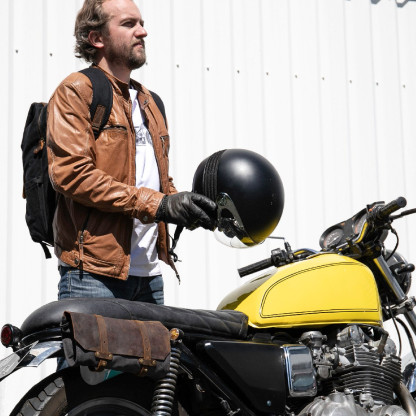 Il faut pouvoir faire entièrement confiance à sa trousse pour outils. C’est elle qui garde vos précieux accessoires en sécurité. Alors pour être sûrs qu’elle tienne le coup, on a choisi de la toile waxée, notre matière préférée. Elle a été enduite de cire pour la rendre résistante aux taches, aux accrocs et même à l’eau. C’est du solide ! Elle ne craint rien, même si vous l’emmenez sous la pluie à bord de votre bécane. On a aussi ajouté du cuir véritable pour encore plus de robustesse.