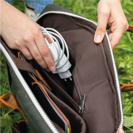 Pour garder ce côté sportswear, on a mis des zips blancs et une sangle bicolore. Mais on a aussi voulu lui apporter un look chic avec notre toile waxée, robuste et déperlante.